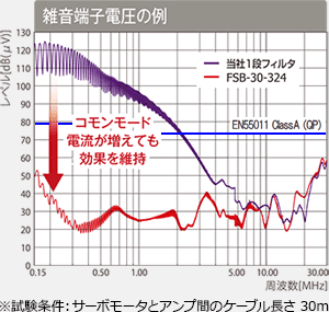 2段フィルタによる減衰効果により、輻射ノイズ低減にも効果を発揮します。