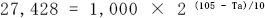 また、求められたLに該当する周囲温度をアレニウスの10℃2倍速に従い計算すると、