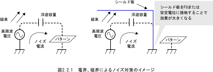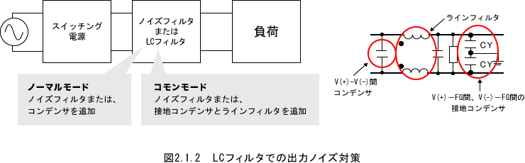 - (1)雑音端子電圧(入力帰還ノイズ)の対策