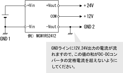 - 出力電流はDC-DCコンバータの定格出力電流を超えないようにしてください。