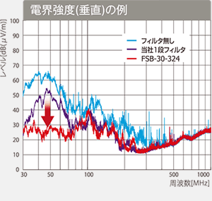 2段フィルタによる減衰効果により、輻射ノイズ低減にも効果を発揮します。