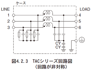 内部回路が対称型のフィルタ(NBC、TBCシリーズ)であれば、接続方向による差は出ませんが、非対称型(NAC、TACシリーズ)などの場合には差が出ることがあります。