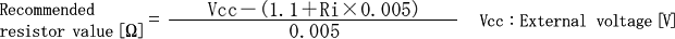 The following formula shows how to calculate the value of the current-limiting resistor.