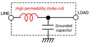 The overall circuit structure is the same, but it uses a high‑permeability choke coil with higher inductance, which enhances low‑frequency attenuation.