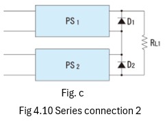 By using the connection shown in Figure 5.12(c), redundant operation becomes possible, provided that the load current (the current flowing through RL3) is kept below the rated current of a single power supply.