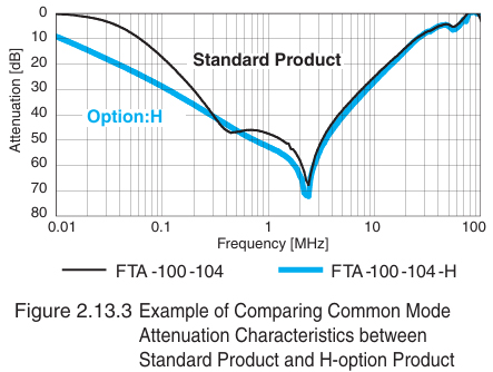 These types provide improved common-mode attenuation at low frequencies compared with the standard products.