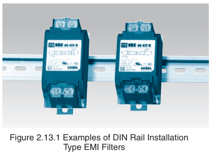This option allows the EMI filter to be mounted on a DIN rail, which is commonly used in control panels and similar equipment.