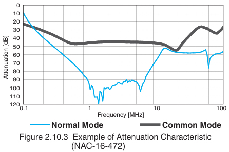 * An attenuation of 20 dB corresponds to a noise level reduced to 1/10 of that without the EMI filter.