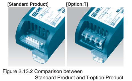 These types of EMI filters use a terminal block as their interface (instead of the connector used in the standard product).
