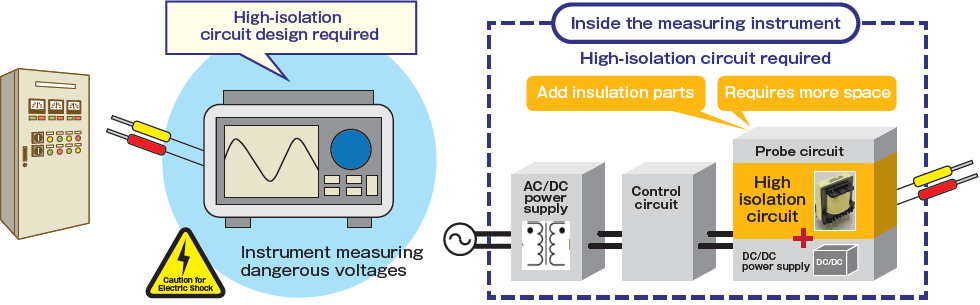 A high level of isolation is required to prevent electric shock in measuring instruments that handle dangerous voltages, such as those found in distribution panel.
