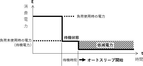 「待機状態」とする負荷率やオートスリープ状態に移行する設定時間(待機時間)などの詳細については当社までお問合せください。