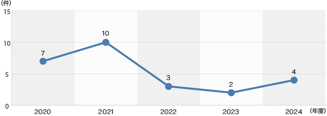 2024年度は労働災害発生件数は増加に転じました。発生内容に傾向性はなく、個別に再発防止対策・全社への周知/啓蒙及び安全衛生教育資料への追加を実施しました。
